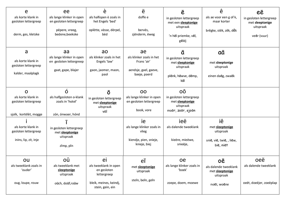 | • de oē van | noēt (noot), woēne (wonen) |